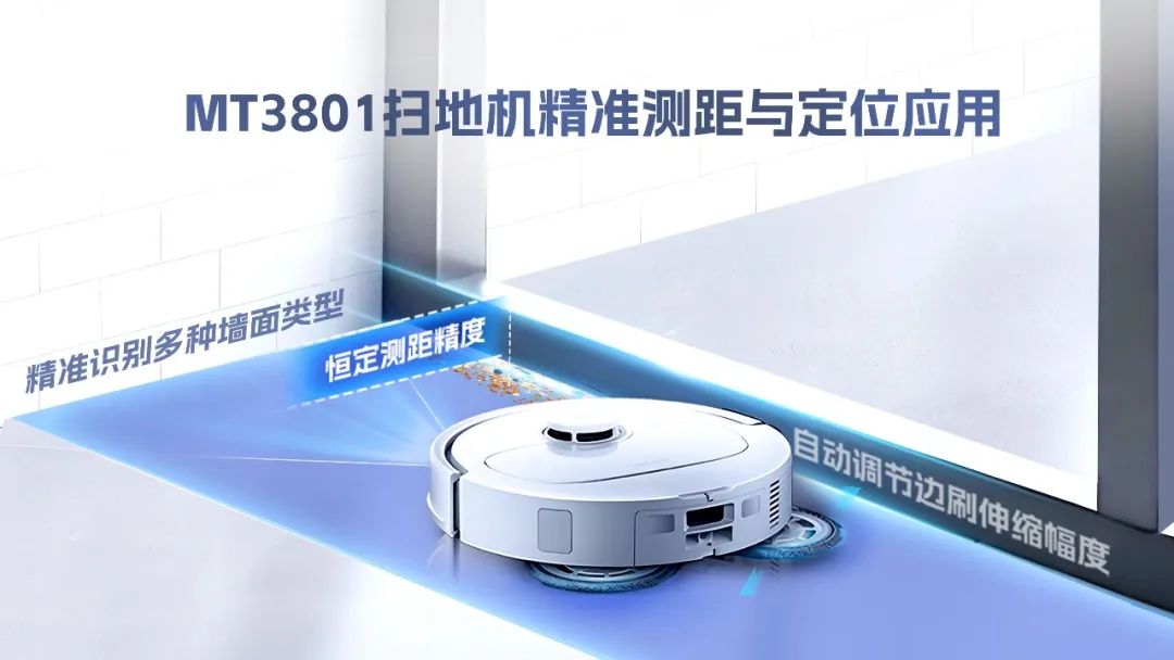 DTOF傳感器在沿墻模式下保持恒定測(cè)距精度,確保邊刷與墻面始終維持最佳間距,實(shí)現(xiàn)極限貼邊。同時(shí),基于實(shí)時(shí)距離反饋,系統(tǒng)自動(dòng)調(diào)節(jié)邊刷伸縮幅度,將墻角垃圾精準(zhǔn)掃入主吸塵通道,還可精準(zhǔn)識(shí)別多種墻面類型(如踢腳線、玻璃幕墻、凹凸磚墻等),并自動(dòng)調(diào)整清潔策略。(點(diǎn)擊查看更多MT3801產(chǎn)品信息)