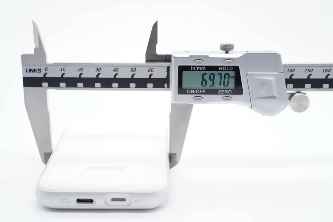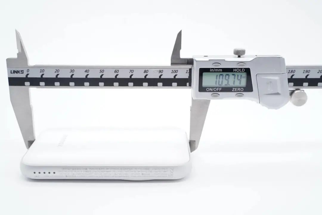 實(shí)測(cè)充電寶機(jī)身長(zhǎng)度為109.74mm。