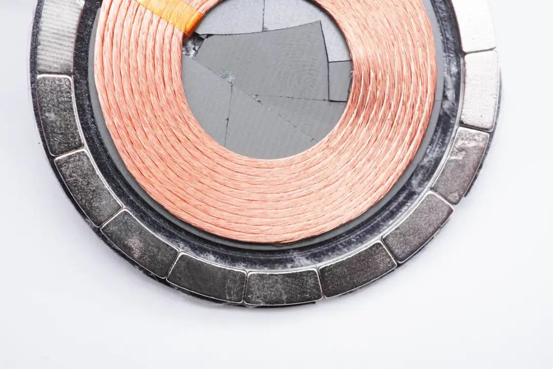 圓形外殼下有磁鐵環(huán)和無(wú)線充電線圈。