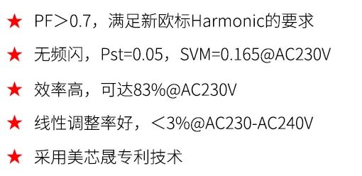 針對(duì)新歐盟標(biāo)準(zhǔn),美芯晟MT7618N和MT7619N應(yīng)運(yùn)而生。其中MT7618N是一款PF>0.7無(wú)頻閃的線性解決方案,MT7619N是基于MT7618N內(nèi)置整流橋的解決方案。